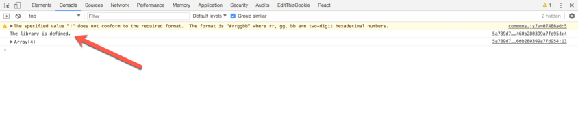 Check the contents of the browser console after adding the updated chart to a dashboard. The following image shows what the console should look like: