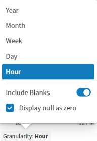 Slide Include Blanks on to request even time intervals. By default, the ability to show all values is disabled and only attributes with a value greater than NULL are displayed.