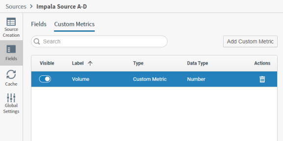 Select Add Custom Metric to add a custom metric. Select an existing custom metric to modify the metric.