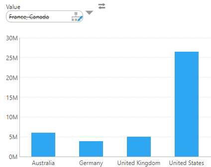 The filter is now connected to the hierarchy selected in the bridge parameter, and you can select either continent or country values.