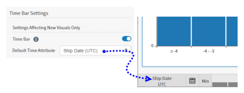 The attribute you select is used as default and is displayed on the time bar after you create and open a new visual: