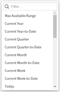 Use the filter box at the top of the presets list to locate the preset setting you want. Descriptions of each of the preset options are provided in Preset Time Ranges.