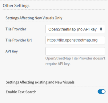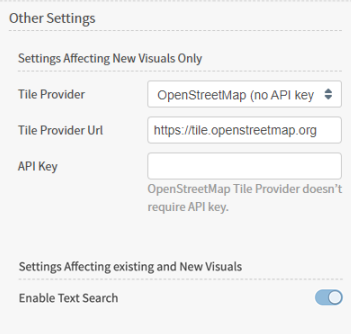 Toggle on Enable Text Search in the Other Settings work area if you want to enable the text search option for new and existing visuals.