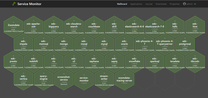 The Wallboard view provides shows all the Symphony microservice types used in your installation. You can access it by selecting the Wallboard menu option.