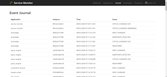 The Journal view allows you to review the journal entries for each Symphony microservice type.