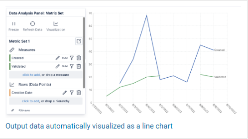 Data is commonly grouped and aggregated once used in a metric set in Symphony, which can combine the appended rows. For example, clicking Add To New Metric Set in the toolbar and adding all three elements automatically visualizes the data like the following: