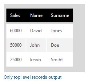 With Output Top Level Records Only checked:
