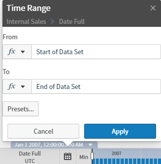 Adjust the time bar time range for a visual using the time range dialog