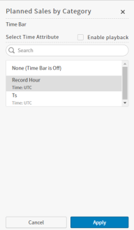 - Enable playback, if the selected time bar field supports it. See Live Mode and Historical Playback.