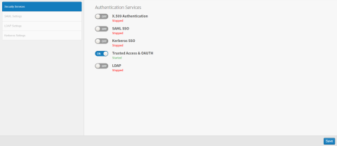 On the Security Services tab, turn on the appropriate switch (slide it to the right) for the authentication service you want to enable.