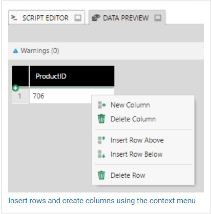 You can right-click a cell to insert a row or create a new column, or move the mouse and click the + icon when it appears where you want to add a row or column.